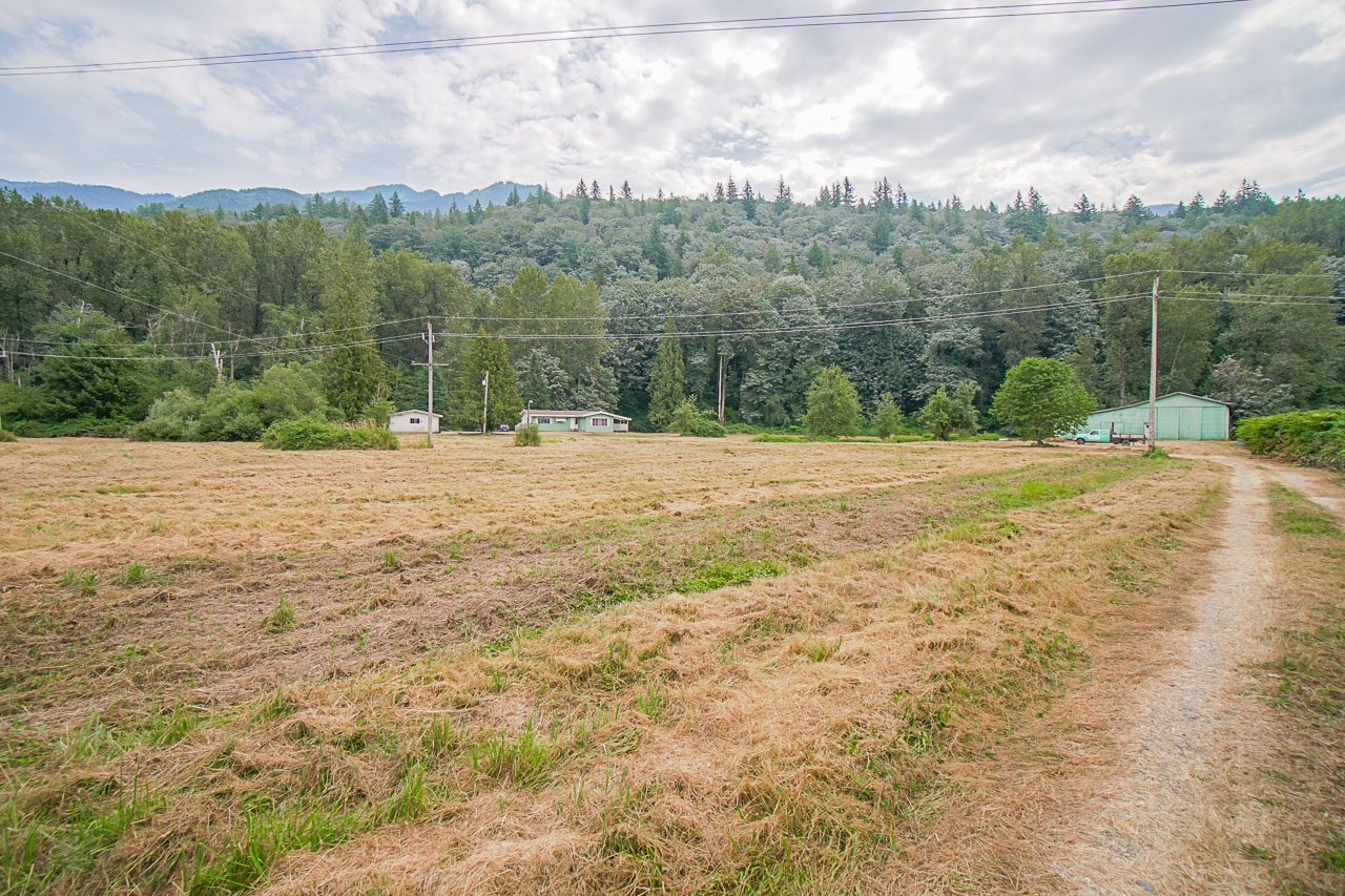 8.58 acres in the beautiful area of Rosedale! Great place to build new or renovate existing home. 1,590 sq ft 3 bedroom home with 2×6 construction, functional layout with lovely patio off the living room. Multiple outbuildings including detached double garage and adjoining space – great potential for studio with plumbing and electrical in place. Approx. 3,548 sq ft barn perfect for animals or storage. Wide open spaces for youngsters and animals to run and play with excellent pastures ideal for horses, cattle, and crops. Ample water available with domestic and stock watering rights from a nearby spring. This is your opportunity to own a small country acreage at the foot of Mt. Cheam in a very desirable location near schools (Rosedale Traditional, Unity), 15 mins to downtown Chilliwack.
